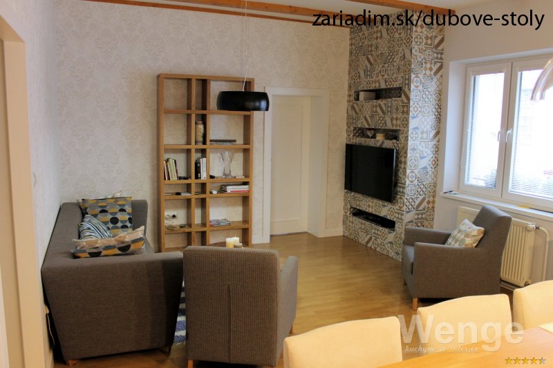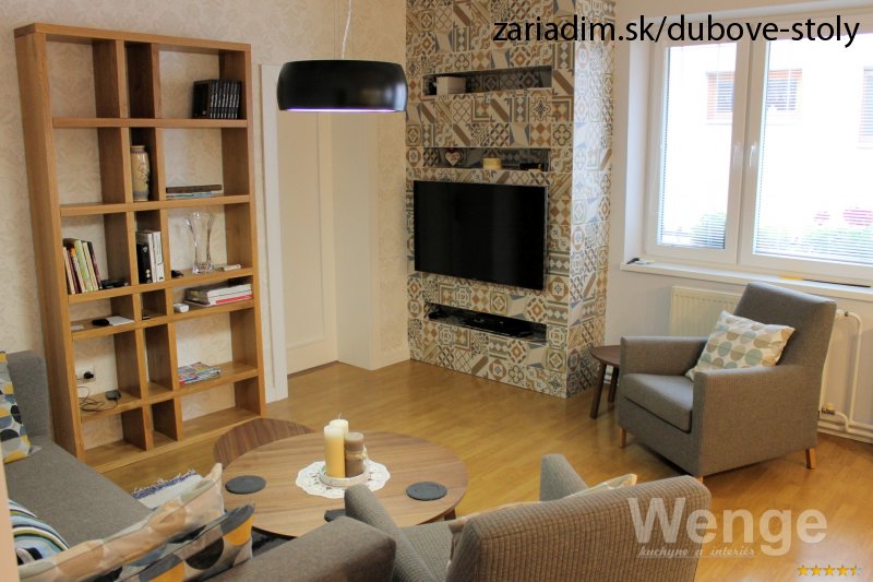 Zariadenie interiéru na mieru: - knižnica - komoda - nika v stene - stôl