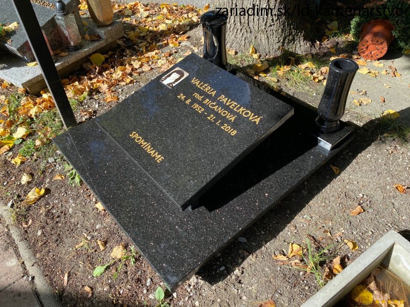 Prerábka existujúceho urnového hrobu v Petržalke. Materiál Galaxy Star, doplnky žulové tiež Galaxy, písmo pieskované a zlátene