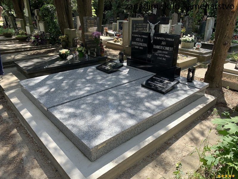 Rekonštrukcia Dvojhrobu v Bratislave. Spodok a prekrytie Francuzsky TARN, pomník obnovený ostal pôvodný, doplnky žulové.