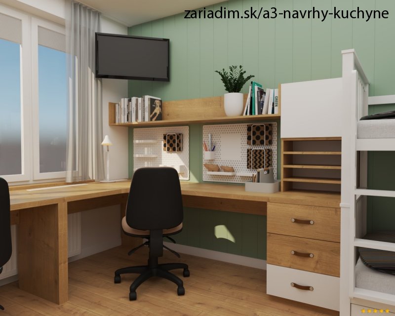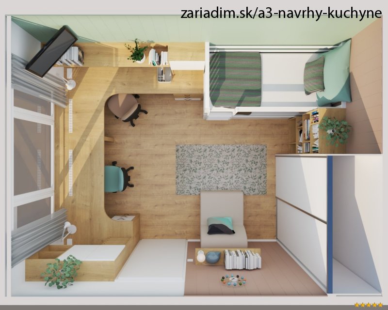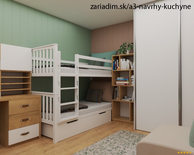 Grafický návrh detskej izby spolu s technickou dokumentáciou k jej výrobe.