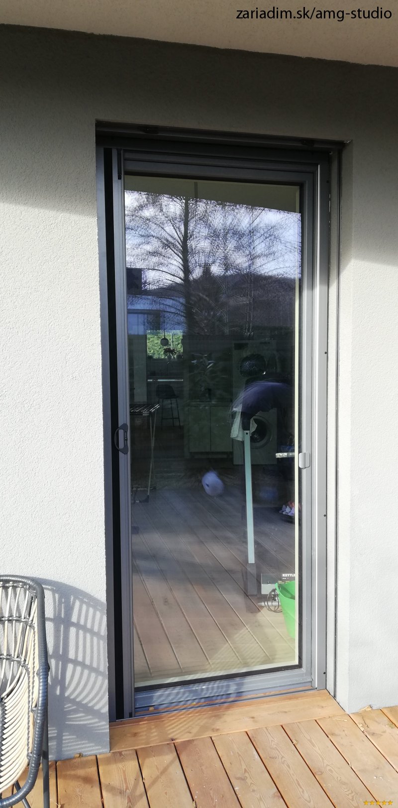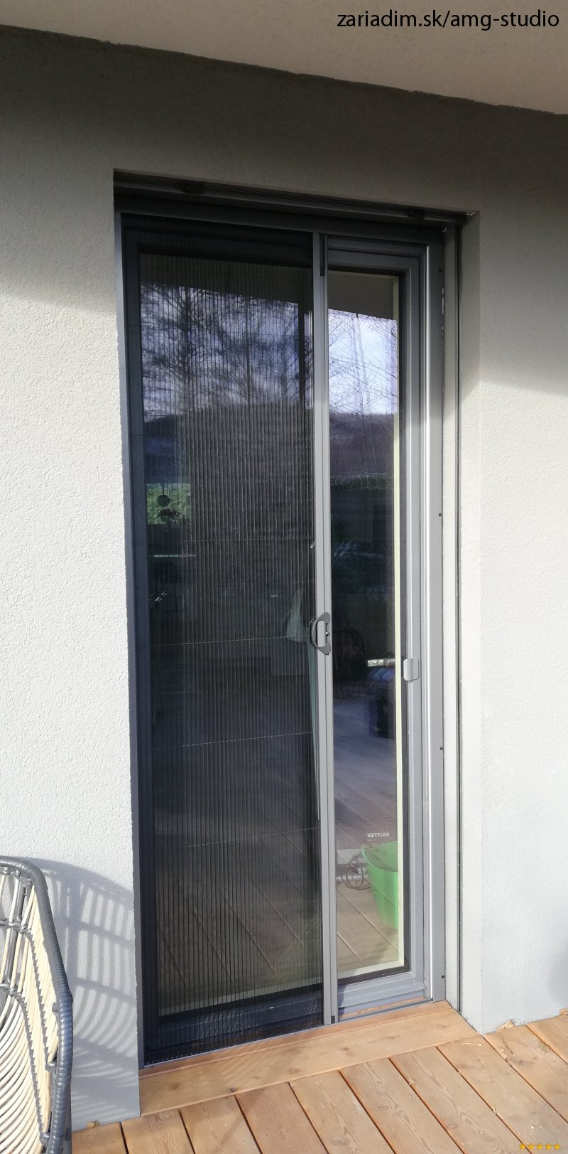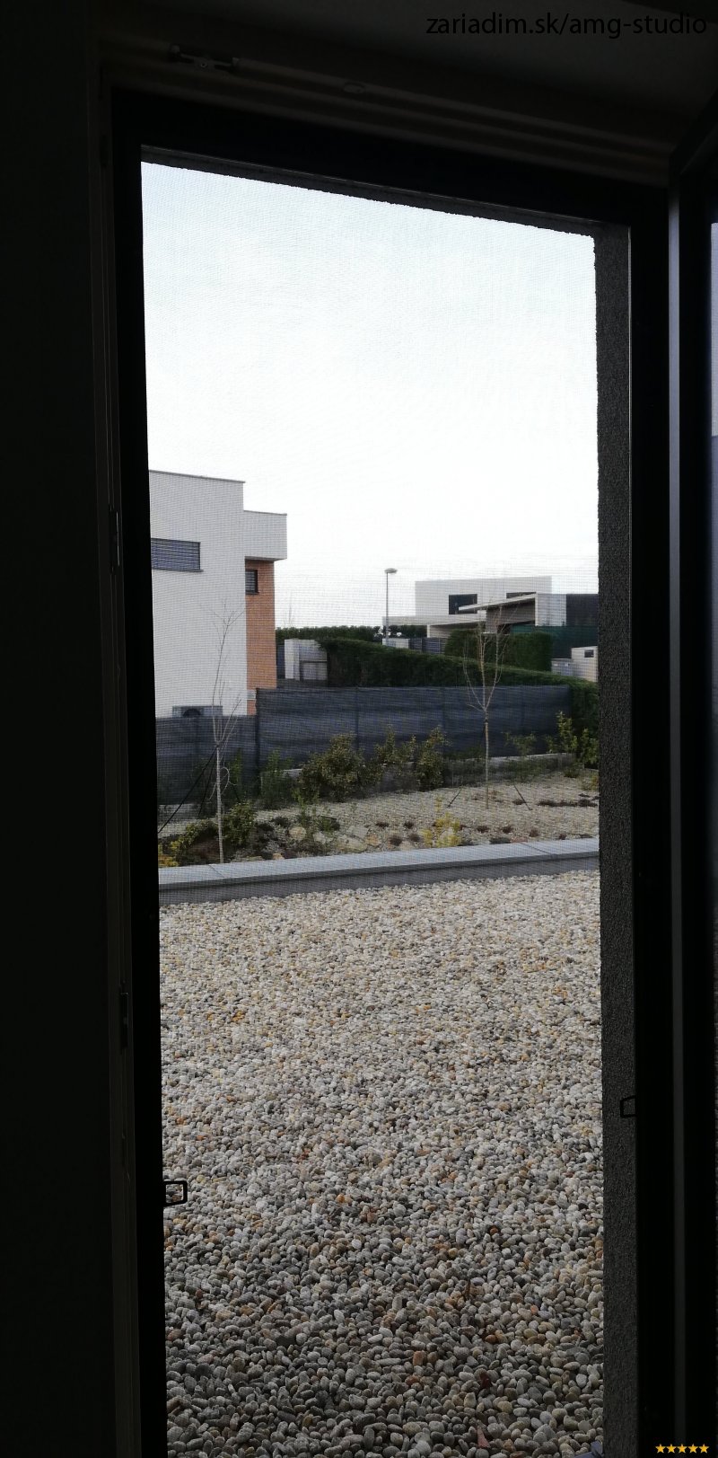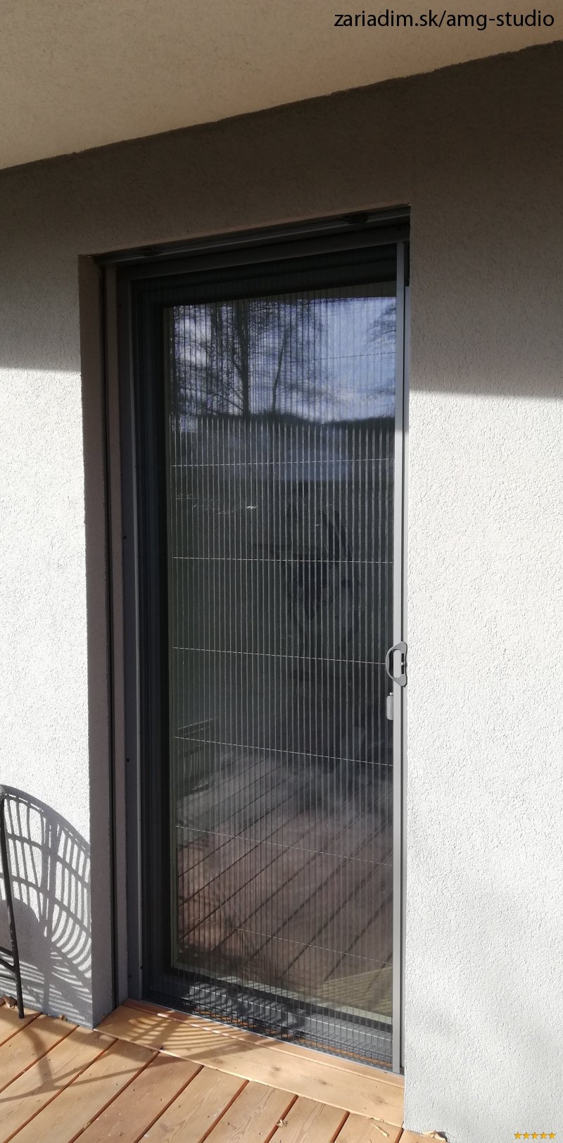 Nový rodinný dom sme vybavili pevnými okennými sieťami Ideal a plisovanou dverovou sieťou IPDS22, pričom všetky prvky boli precízne zladené s farbou rámov okien pre jednotný a estetický vzhľad.