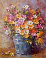 Námety : kytice, zátišia, kópie starých majstrov.