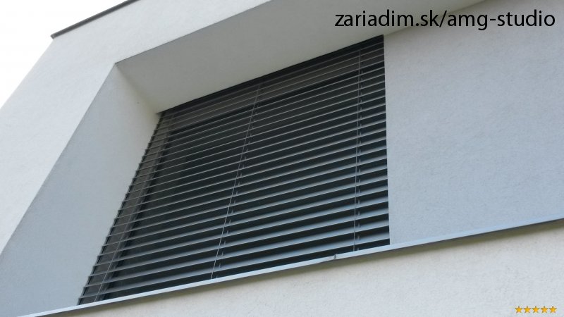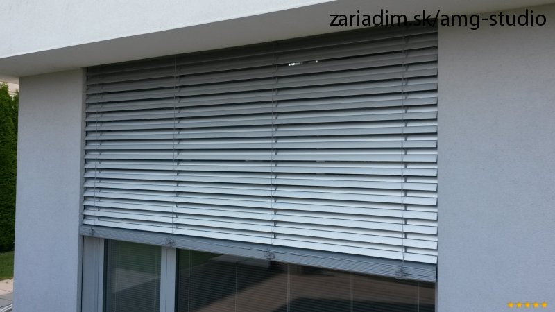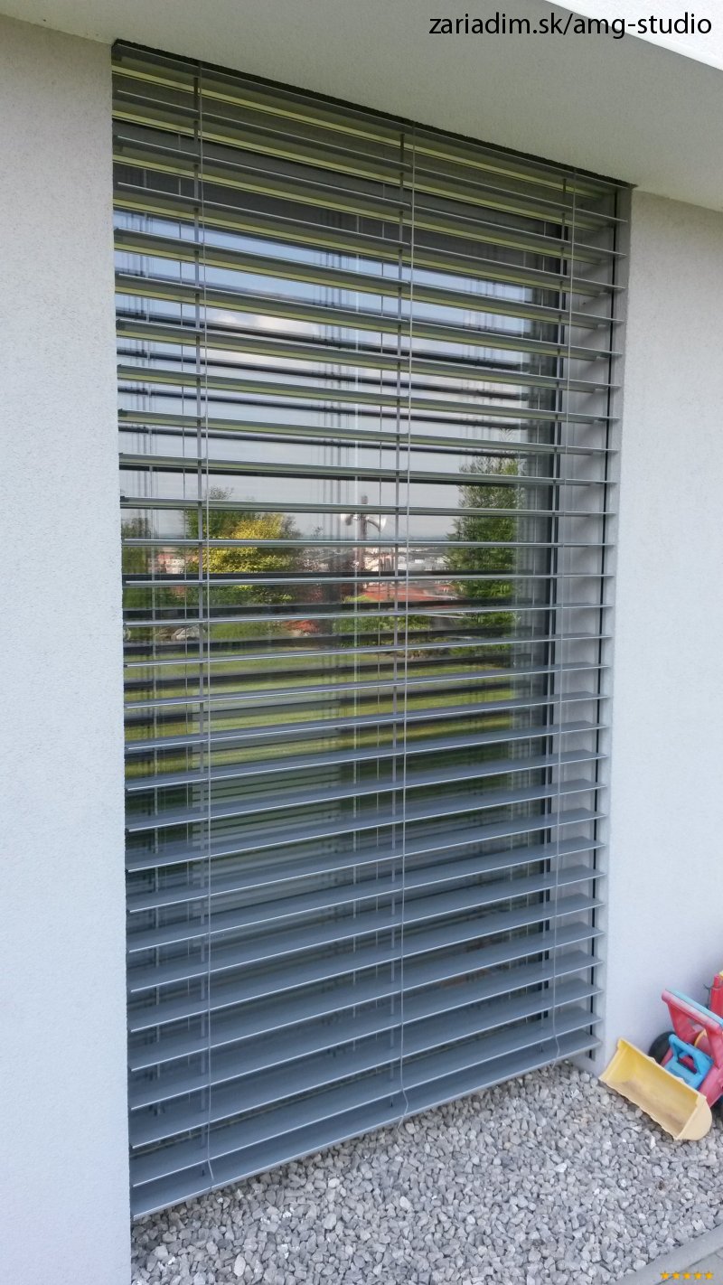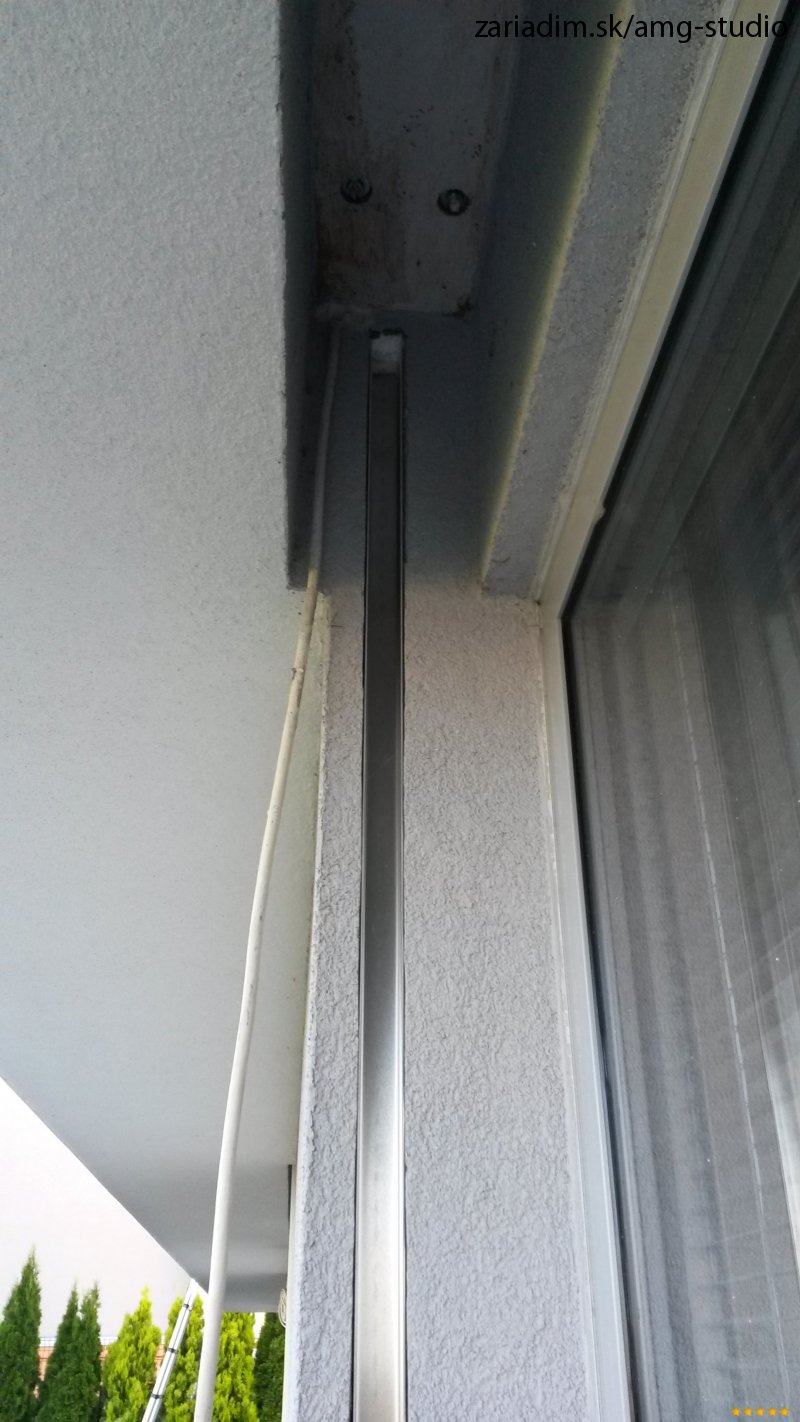 Do špaliet sme vložili podomietkové hliníkové puzdra, ktoré slúžia na upevnenie vodiacich líšt žalúzií a následne sme namontovali samotné vonkajšie žalúzie. V tomto prípade boli podomietkové profily osadené do zateplovacieho polystyrénu, ale máme skúsenosti aj s ich osadením do minerálnej vlny (sklenej vaty) alebo muriva.