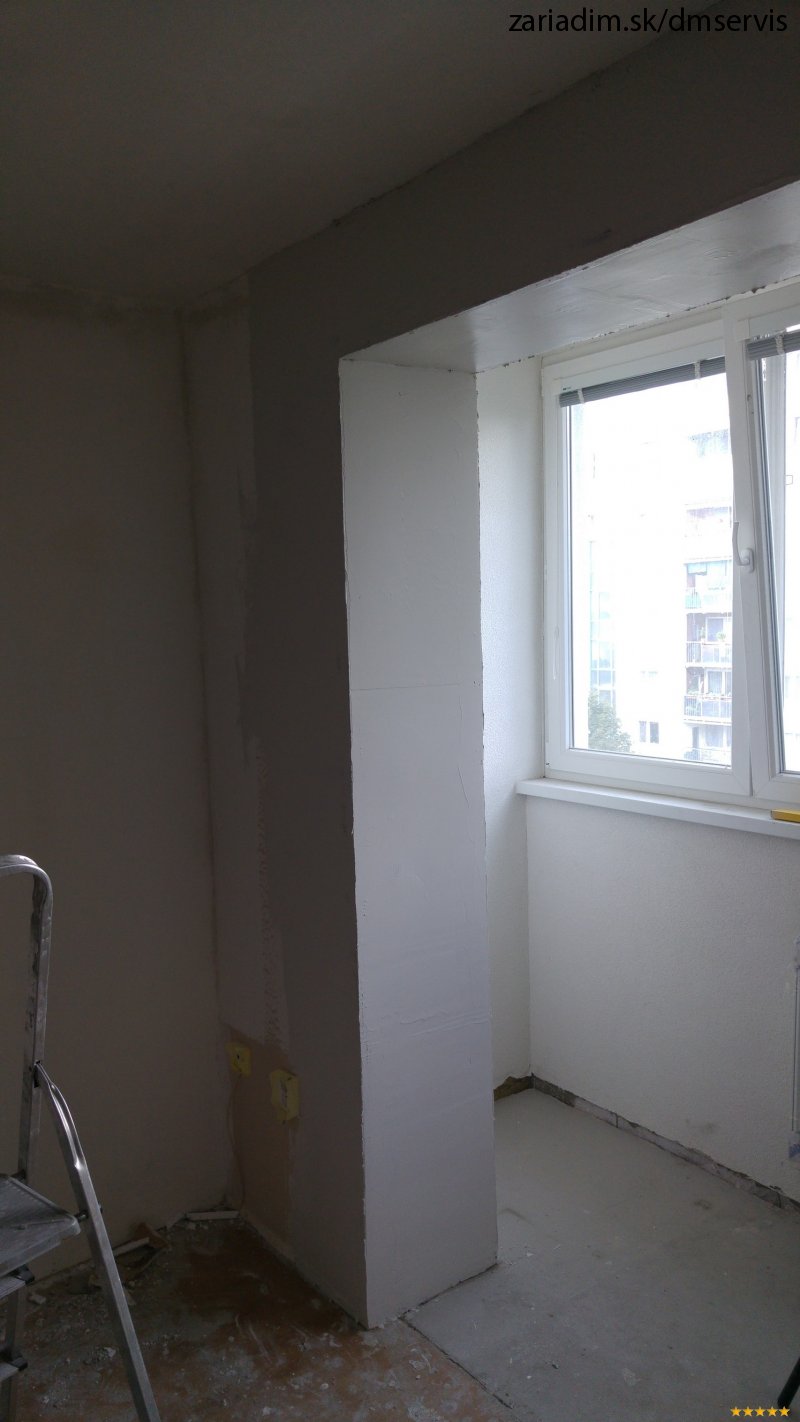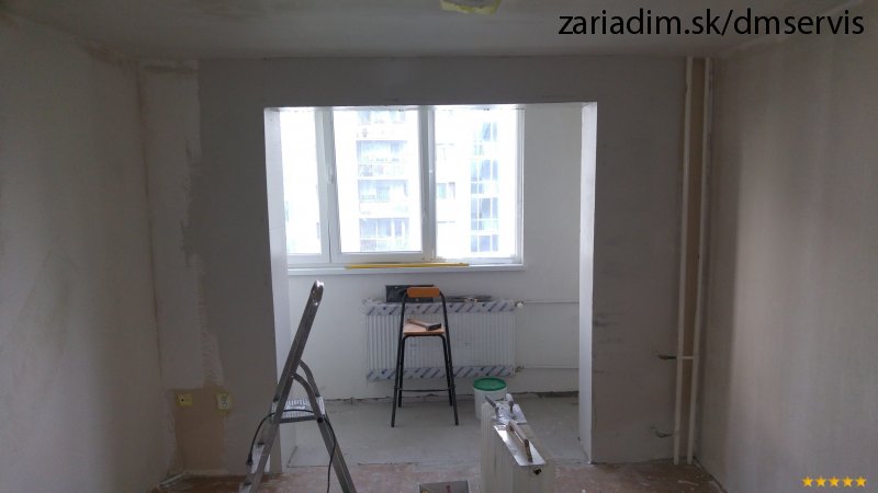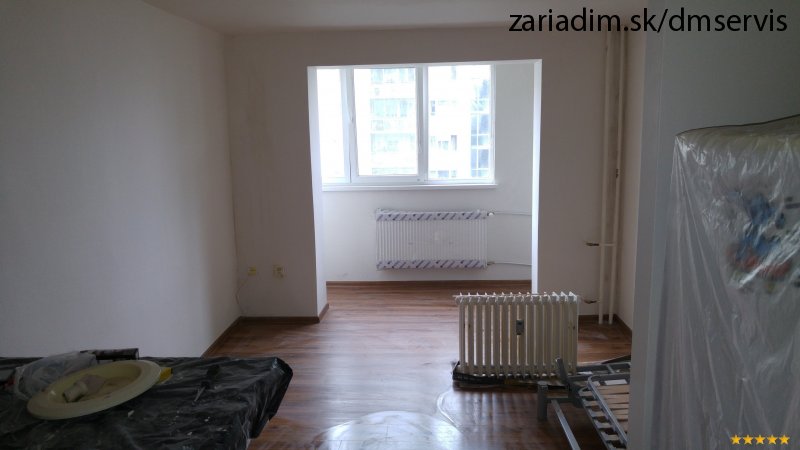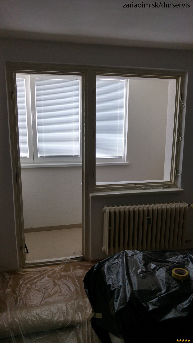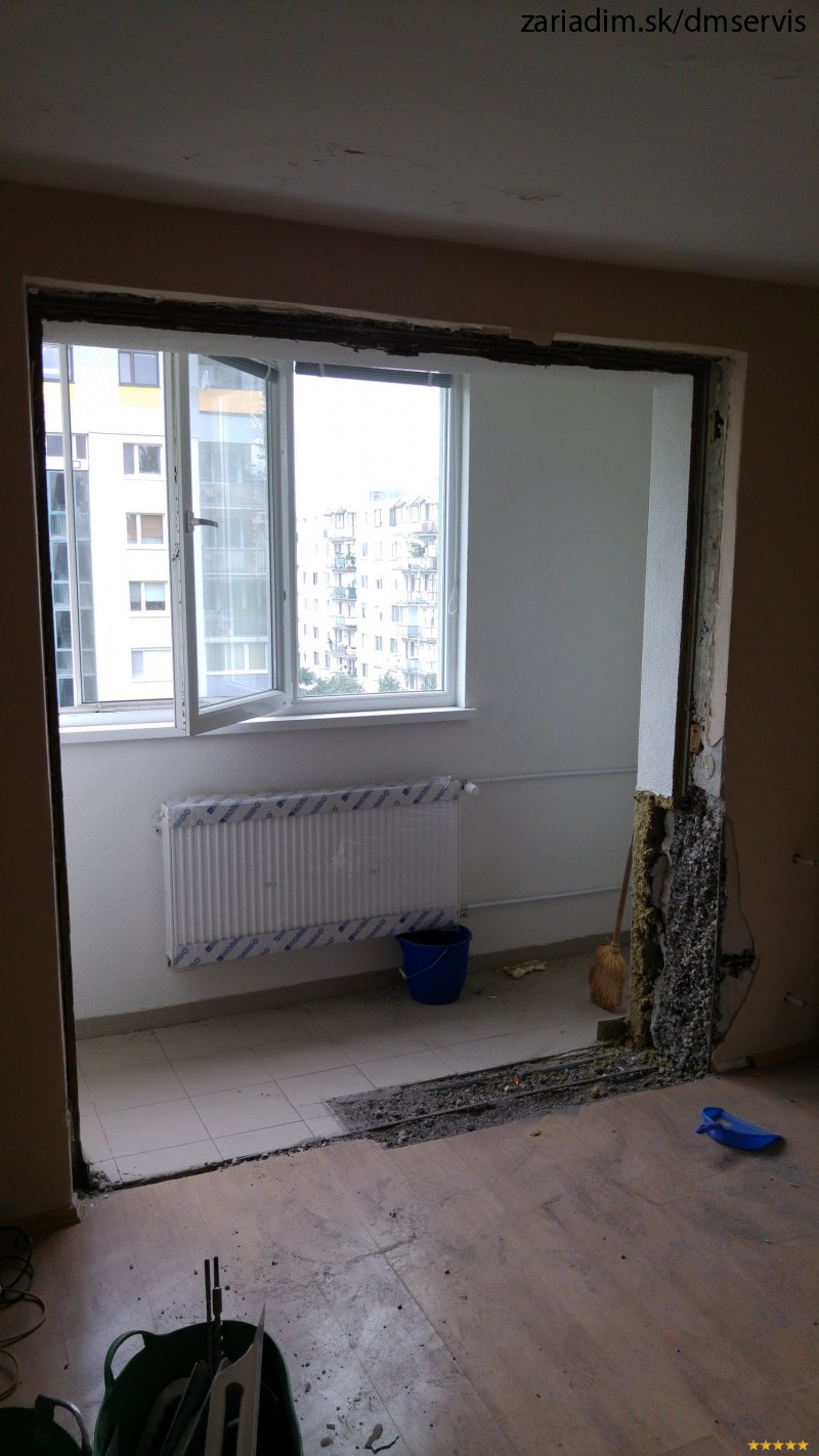 Rekonštrukcia bytu: Vybúranie balkónového múriku, prekládka radiátoru, plávajúce podlahy.